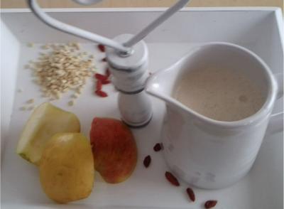 Zum Nachttisch kommt der Apfel zum Einsatz. Der Clou des Ganzen ist jedoch die Cashewmilch!