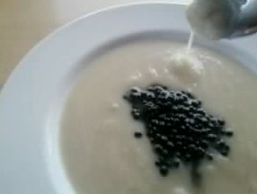 Also, weiß wie Schnee und schwarz wie Ebenholz! Die Suppe gibt uns das, was der Winter an Gesundem zu bieten haben. Die Linsen versorgen uns mit Eiweiß und Eisen. Sie sind übrigens ganz mild im Geschmack und gar nicht so mehlig. Mein Sohn meinte: "Sieht ja aus wie Kaviar!" Woher ein 8-jähriger das wohl weiß?